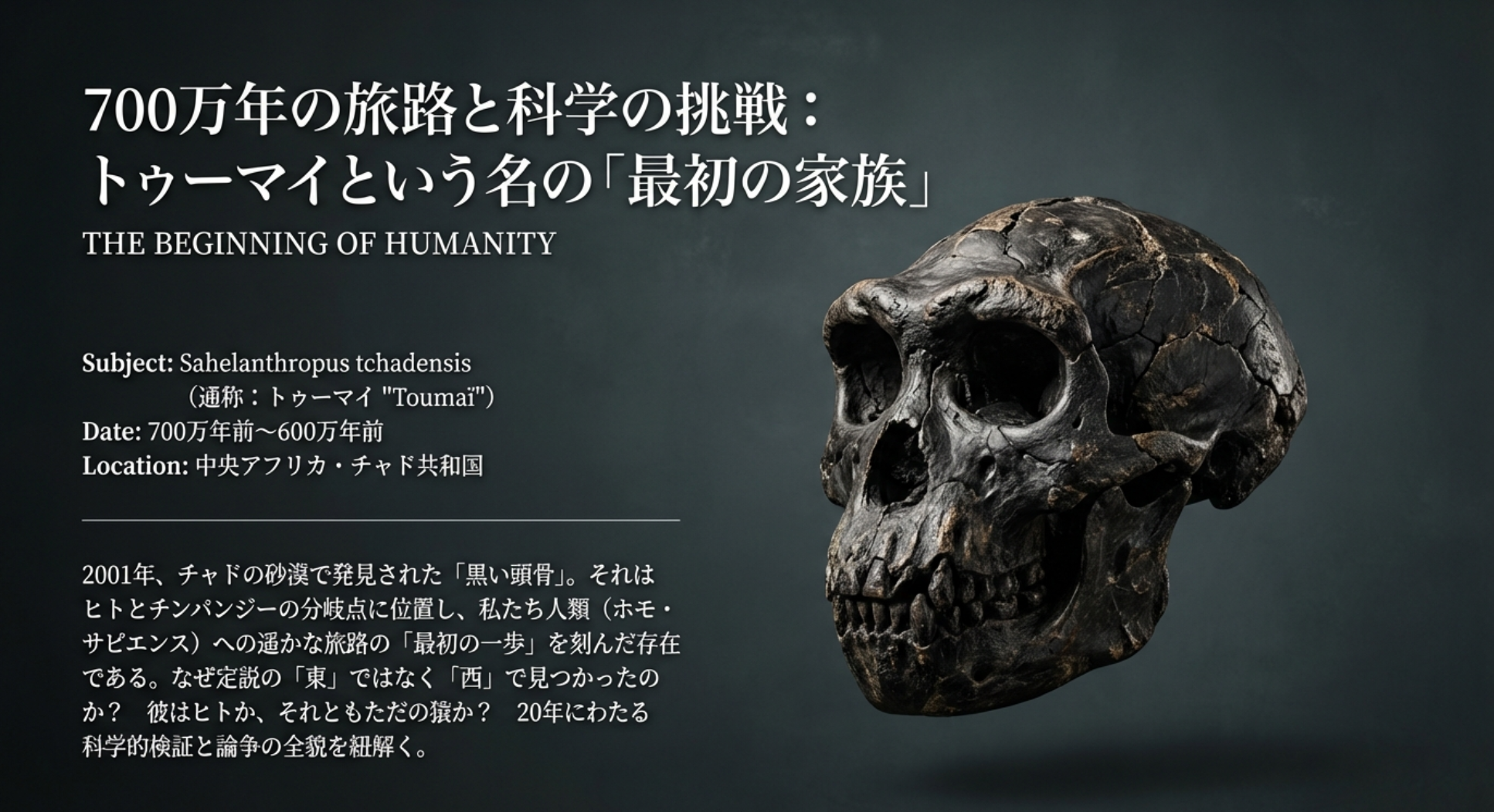 2001年、チャドの砂漠で発見された一つの化石が、世界中の科学者たちを震撼させました。